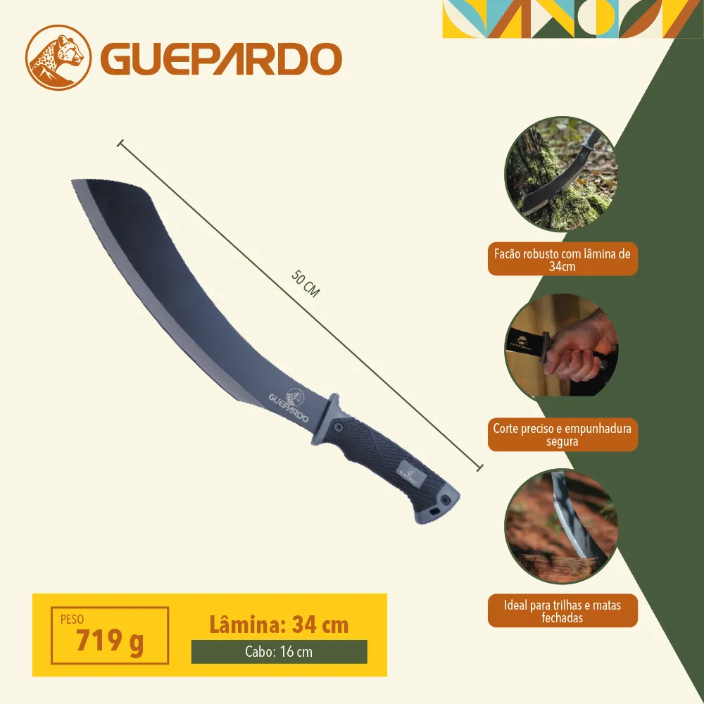 O Facão Dixon da Guepardo é uma faca de mato Full Tang de maiores dimensões, desenvolvida especialmente para aventureiros que realizam trabalhos em meio a mata fechada.
